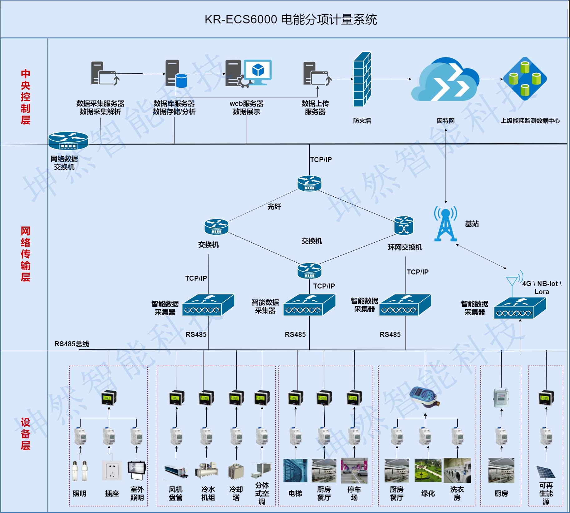 kr-ecs6000電能分項計量能效監測平臺是通過(guò)對建筑安裝分項能耗計量裝置,采用遠程傳輸等手段及時(shí)采集能耗數據,實(shí)現重點(diǎn)建筑能耗在線(xiàn)監測和動(dòng)態(tài)分析的硬件系統和軟件系統的統稱(chēng)。分項能耗是指根據建筑消耗的電能、水、燃氣等按照主要用途進(jìn)行劃分,如電能劃分為:空調用電、動(dòng)力用電、照明用電、特殊用電等。